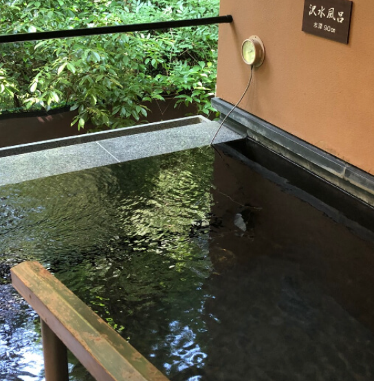 この水風呂は、塔ノ沢の湧き水を使っているので、