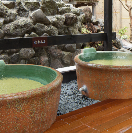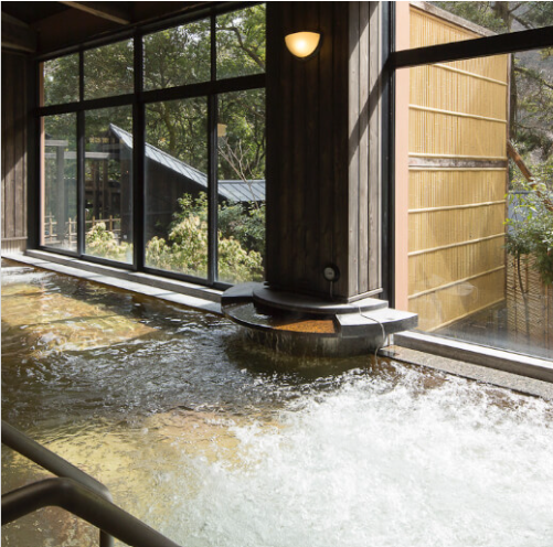 箱根湯寮の大浴場には、見晴らし湯・内湯・岩風呂・信楽風呂など、