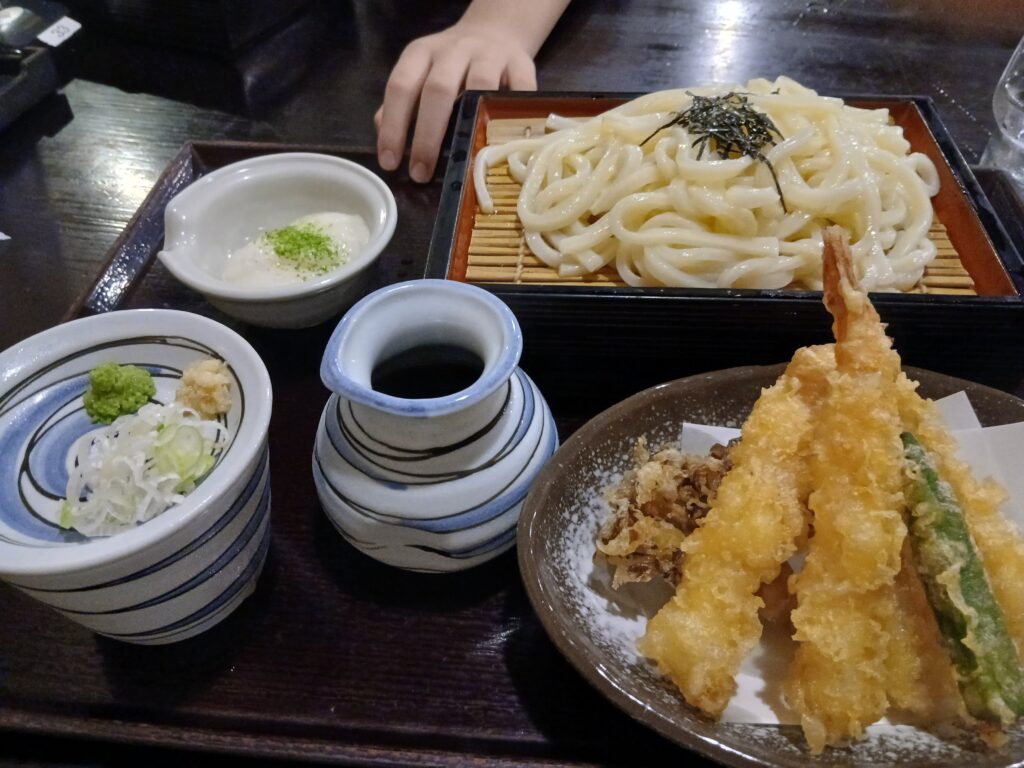 娘は天ぷらうどんと、やまめの炭火焼き。