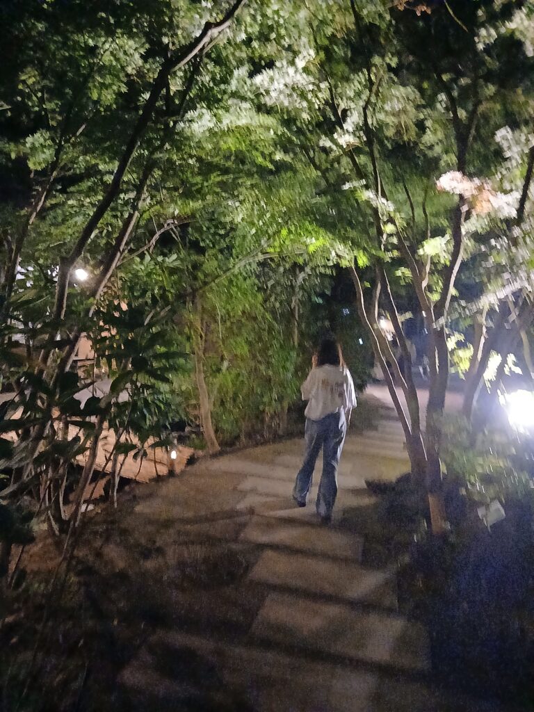 雨上がりで濡れた石畳が灯りに反射して、まるで旅館のような雰囲気り。